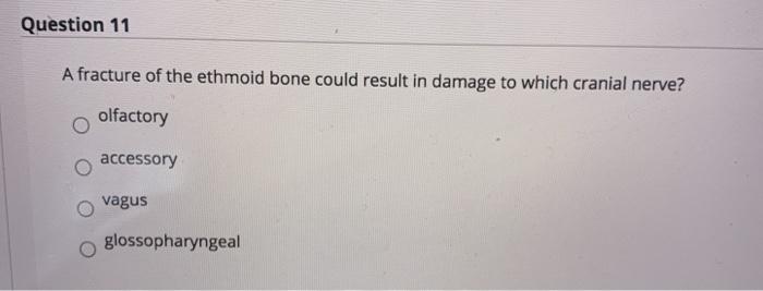 Solved Question 11 A Fracture Of The Ethmoid Bone Could Chegg Com